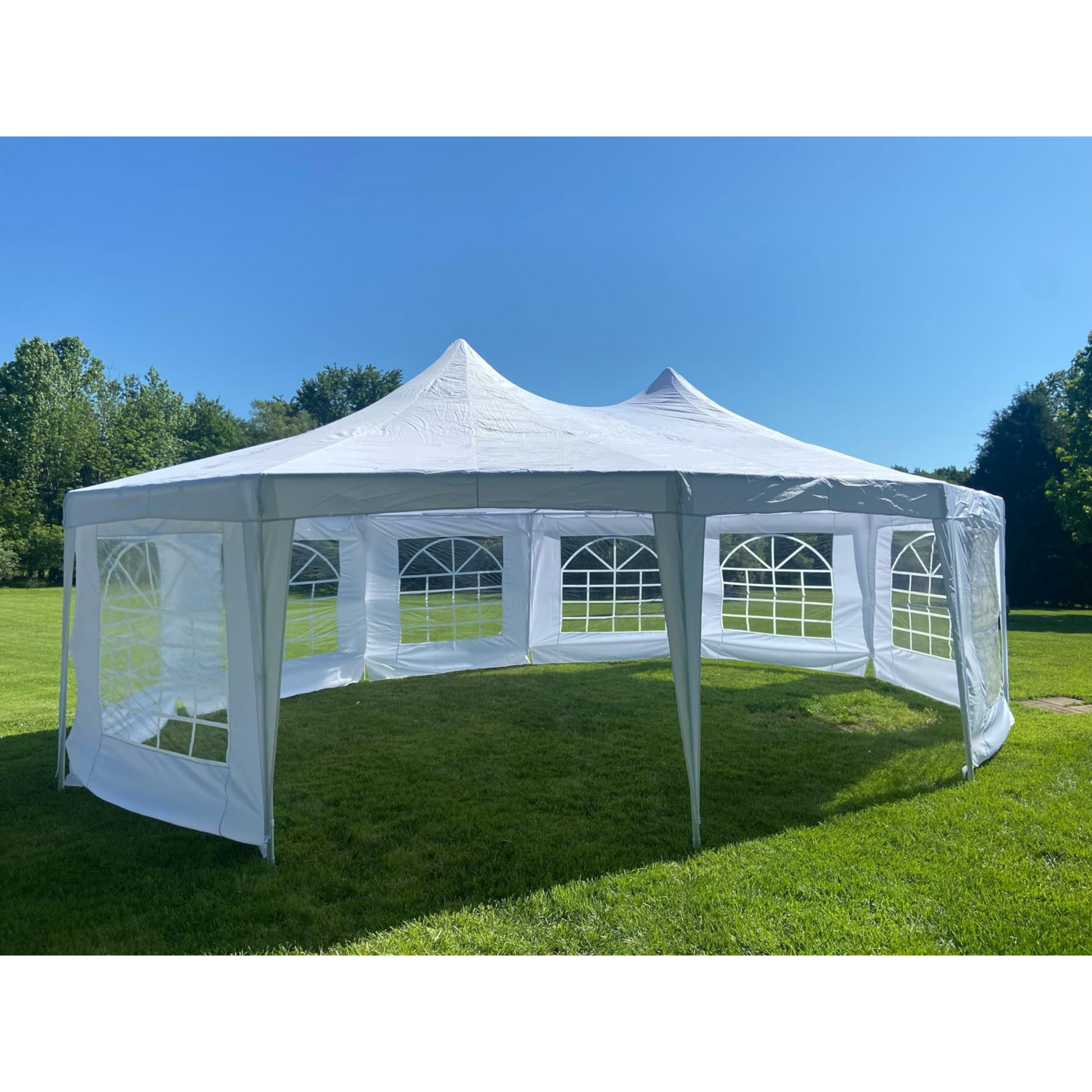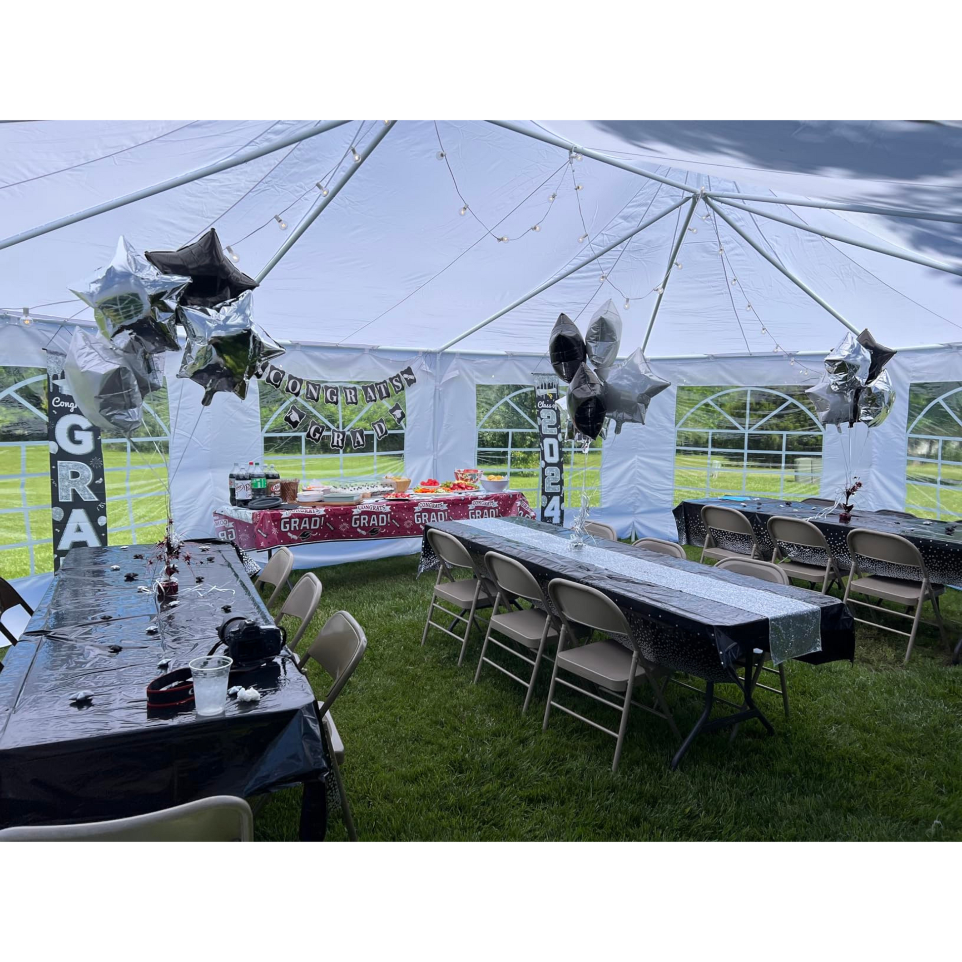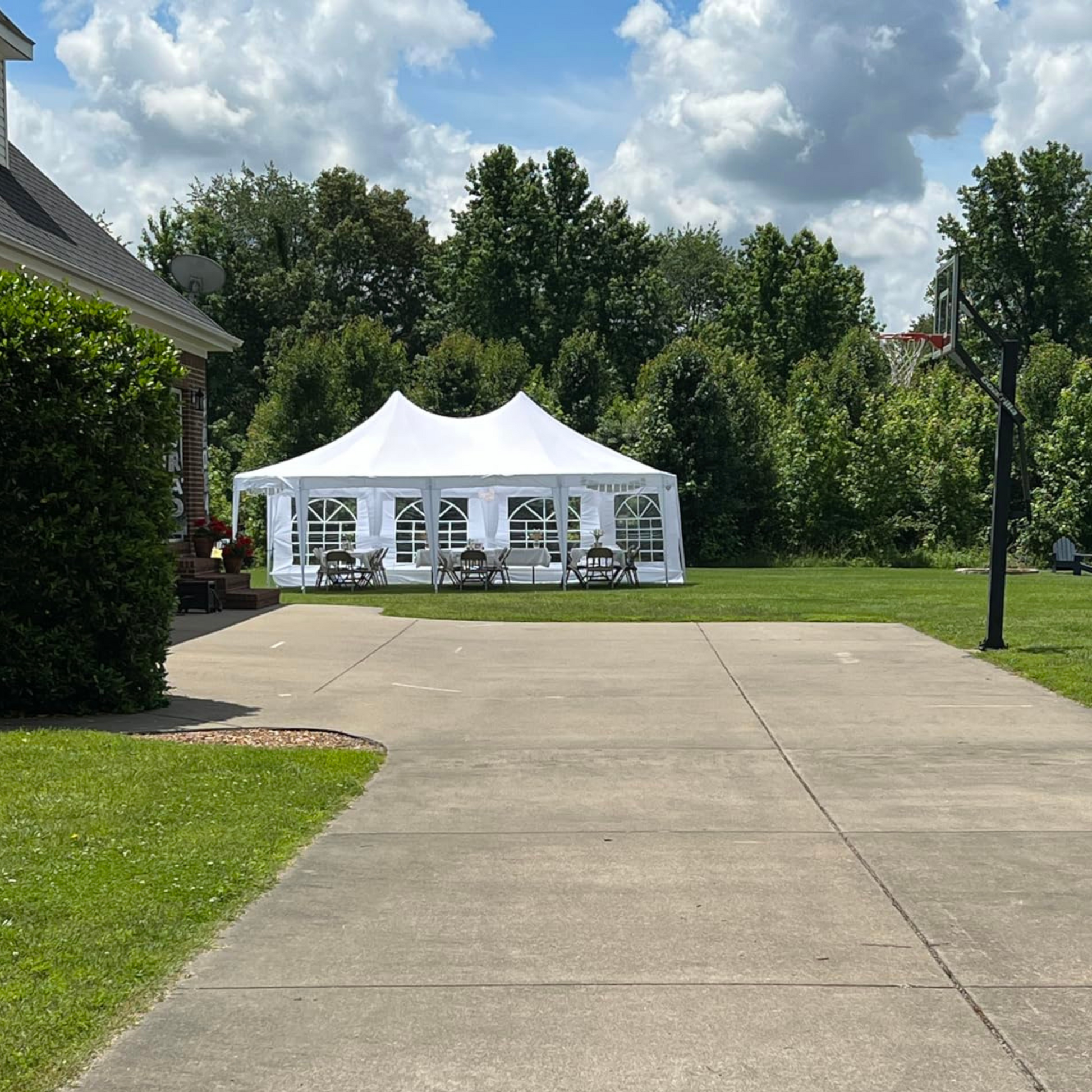 This 29'x23' canopy tent is super versatile and perfect for weddings, parties, or any outdoor event that needs a little extra style and coverage. It features 10 beautiful church-style windows that let in tons of natural light and 2 pull-back doors for easy access and a nice open flow. You can fully enclose it, leave parts open, or take down some or all of the walls—it’s totally up to you and the vibe you’re going for. Whether you want an open-air feel, some shade with a breeze, or a cozy enclosed space, this tent can do it all. It is made with waterproof, UV-protected, and weather-resistant materials. Clean, classic, and easy to work with, it’s a great pick for both casual get-togethers and more formal setups.