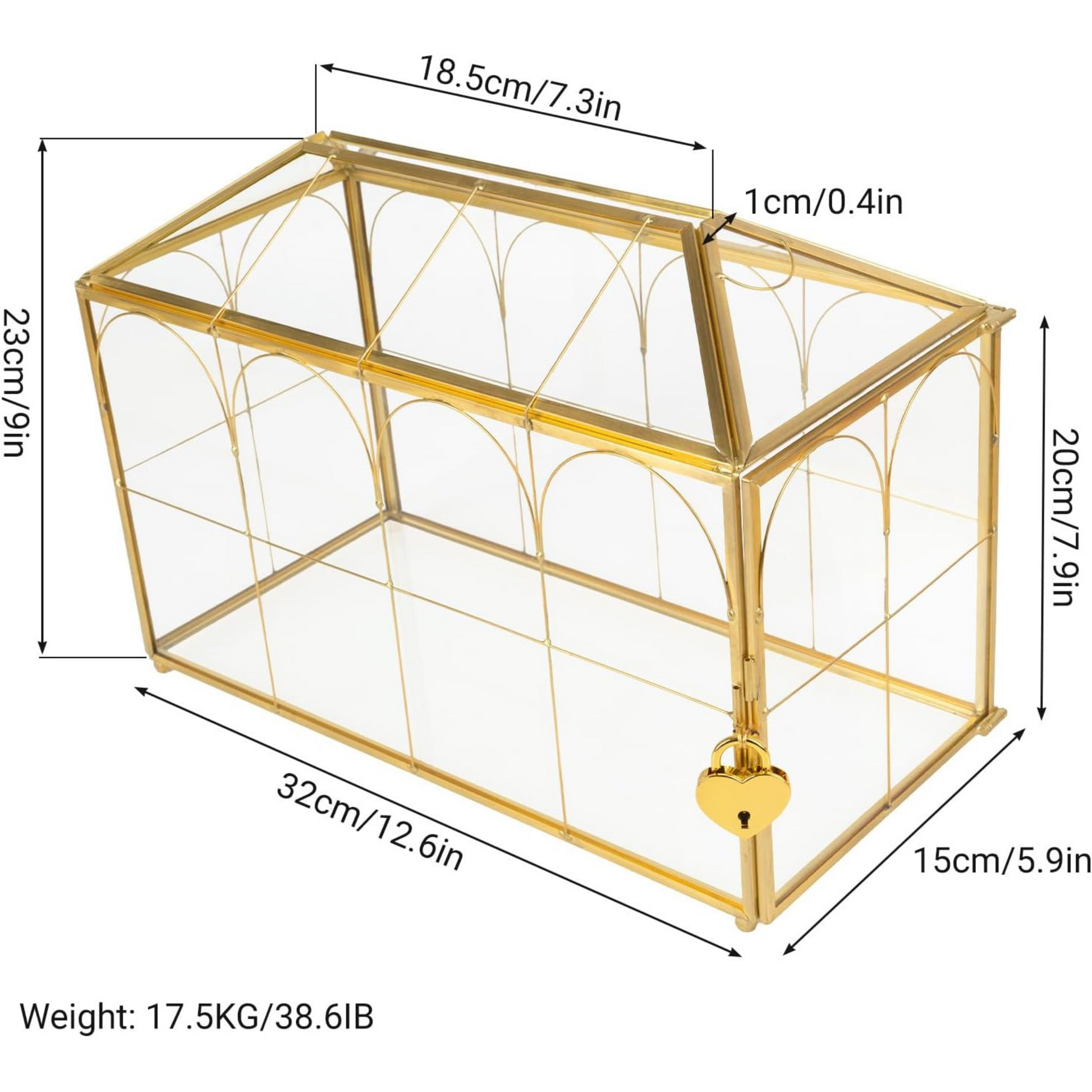 This Glass Letter Box is perfect for weddings, with its large 12.6 x 5.9 x 9 inch size and convenient slot for collecting cards.