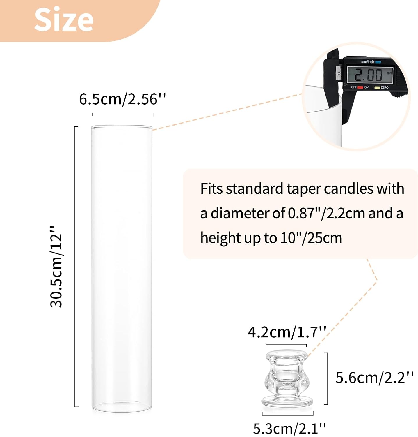 These Hurricane Glass Candlestick Holders are very popular and look very romantic. Our 12 inch tall clear cylinder shade beautifully displays taper candles, adding an elegant touch to any occasion. Fits a standardized candle.